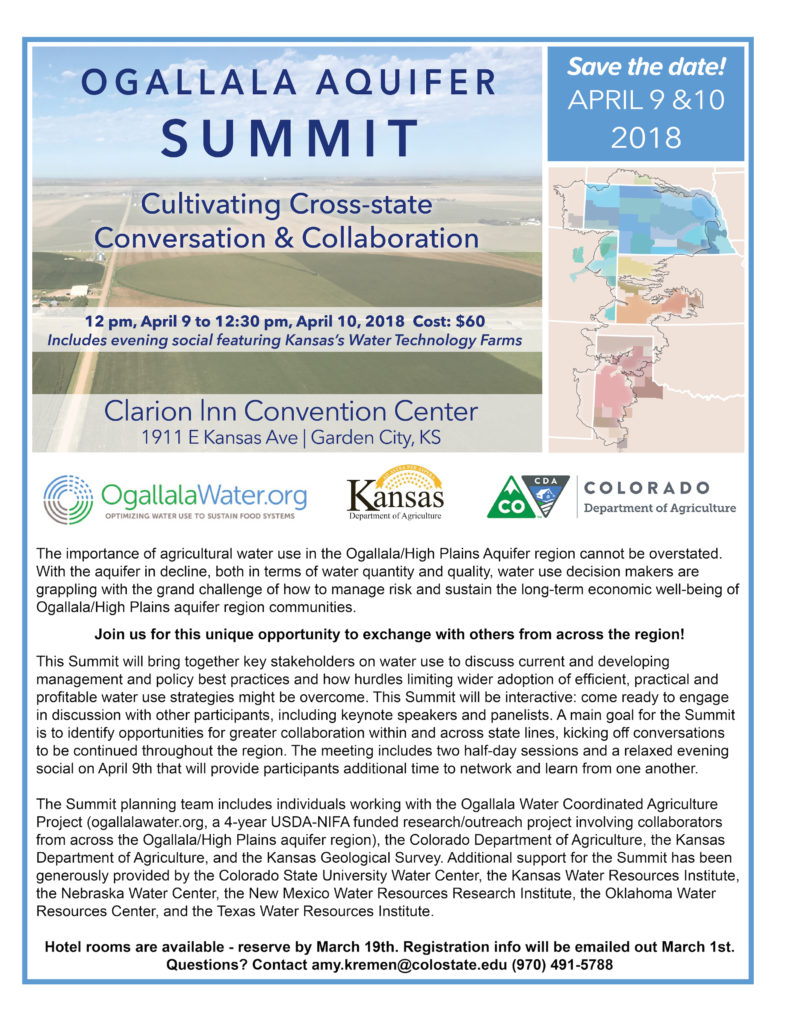 Ogallala Aquifer Summit: Water managers from the eight Ogallala states to meet in Garden City, KS